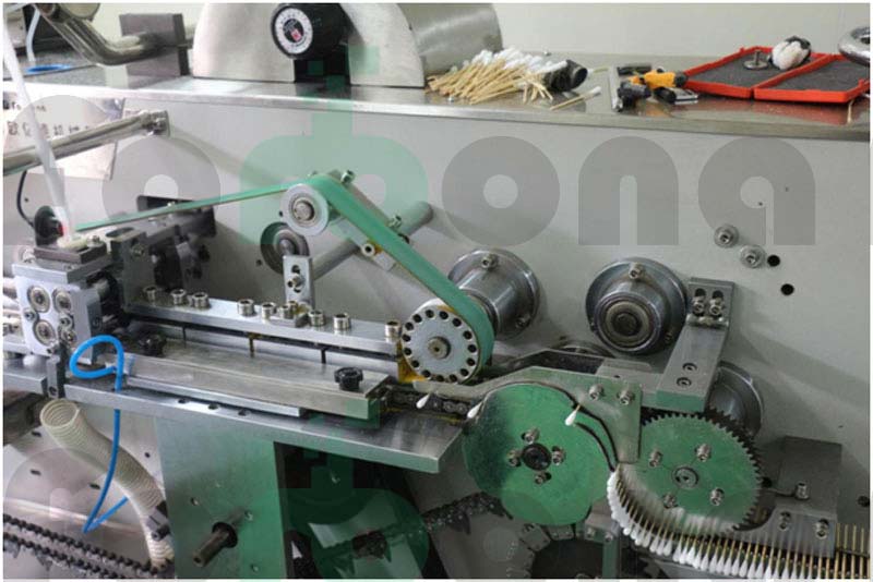 该机为客户提供了生产、烘干、包装一体化的解决方案,该机生产的医用棉签完全符合医疗二类产品的国家政策要求,是客户生产医用棉签的不二选择。 该机所有门板采用高档不锈钢材质,美观,卫生且易清洁。模具采用不锈钢材质取代黄铜材质,更经久耐用,棉签的形状更美观。烘箱内部结构采用我司的独创设