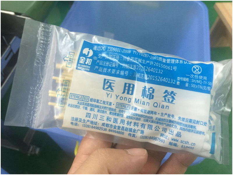 用相同的棉花和竹棒:测试地点- 四川三和医疗耗材有限公司。